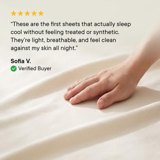 “These are the first sheets that actually sleep cool without feeling treated or synthetic. They’re light, breathable, and feel clean against my skin all night.”