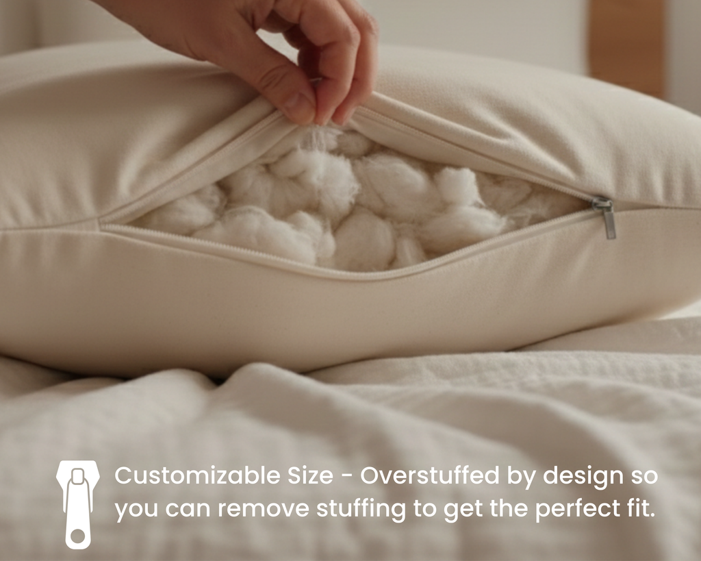 • Adjustable Loft: Intentionally overstuffed so you can add or remove fill for a custom height.